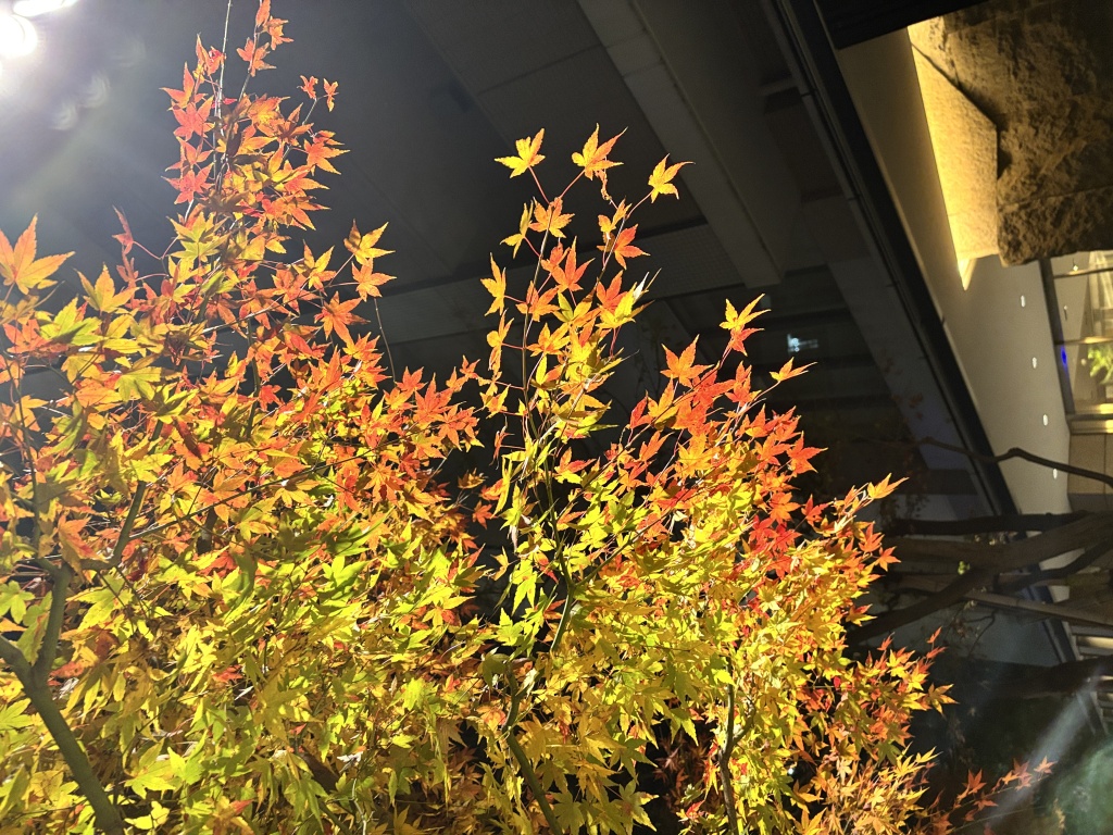 紅葉の写真はマンションの入り口紅葉も最後の色彩で何となく寒々しい気持ちがしました。