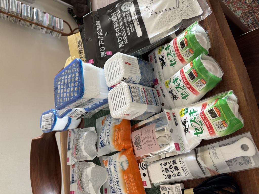 いよいよ今週末からやり始めようと、湿気止めや防虫剤の類を100円ショップに買いにいきました。